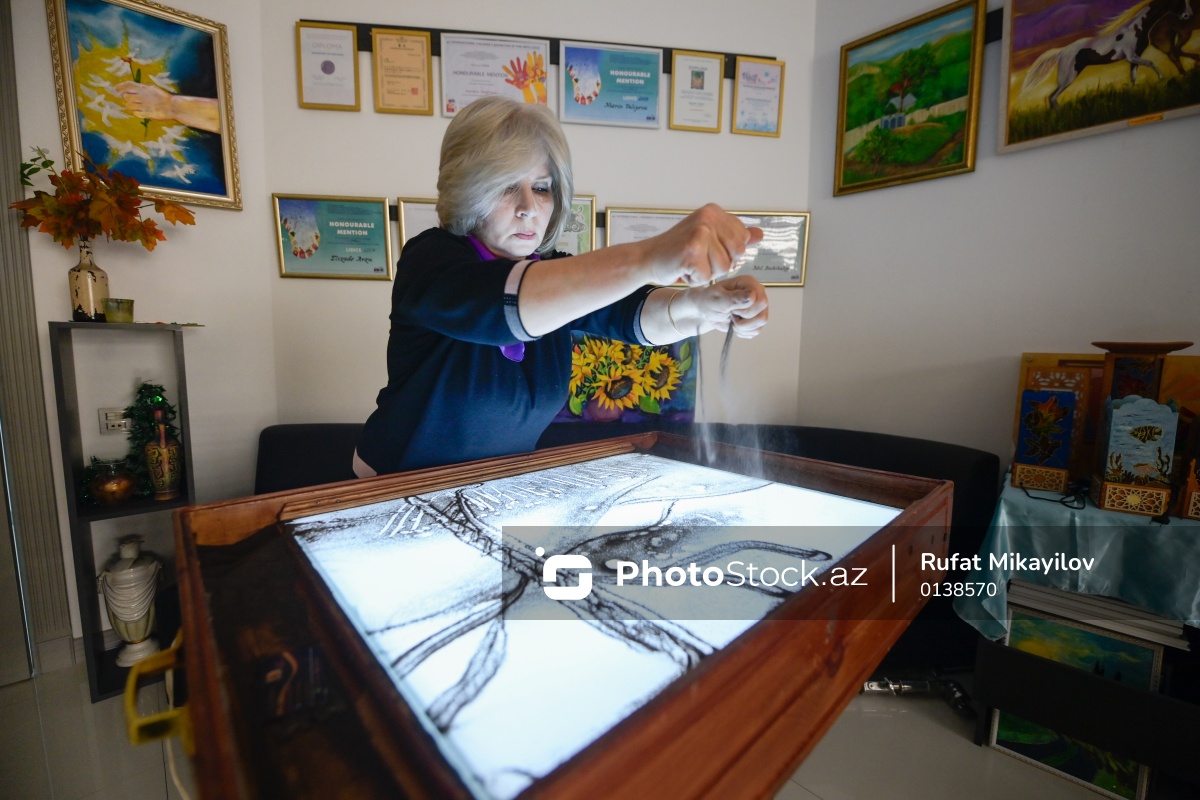 Rəssam Naqiyə Rzayevanın qumla yaratdığı sənət əsərləri