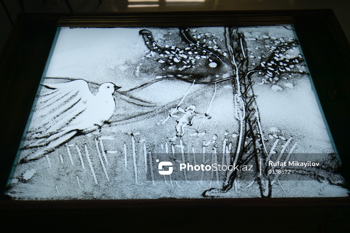 Rəssam Naqiyə Rzayevanın qumla yaratdığı sənət əsərləri
