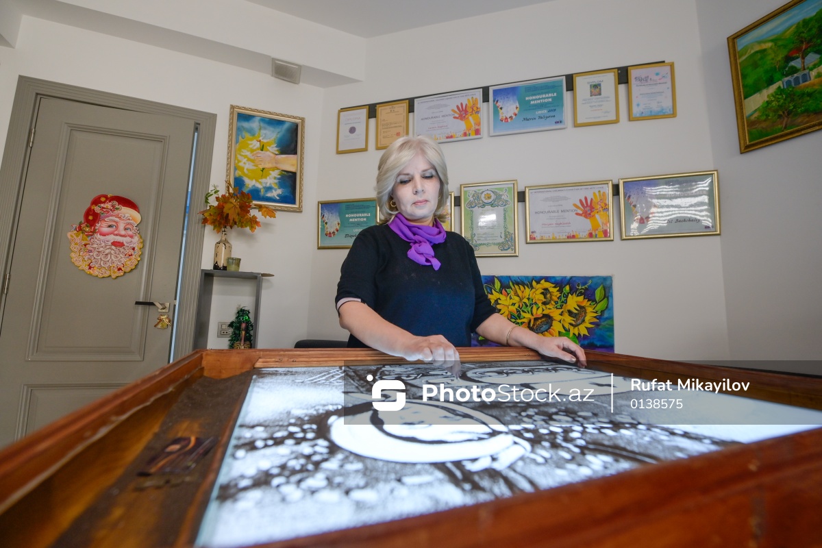 Rəssam Naqiyə Rzayevanın qumla yaratdığı sənət əsərləri
