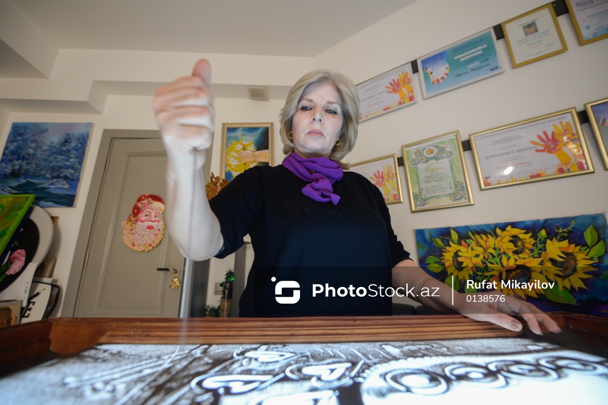Rəssam Naqiyə Rzayevanın qumla yaratdığı sənət əsərləri