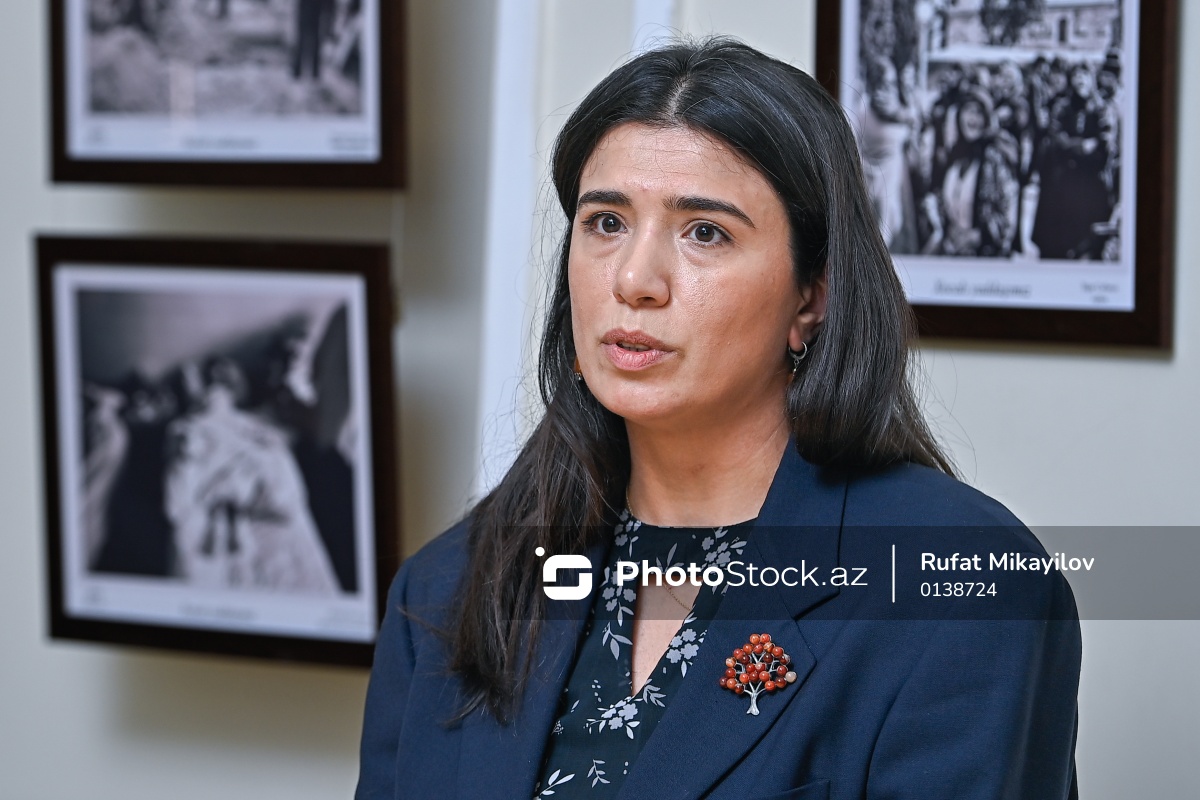 Xocalı faciəsinin 34-cü ildönümünə həsr olunmuş "Zamanı dayandıran gecə" adlı fotosərgidə çıxış edən Azərbaycan Fotoqraflar Birliyinin sədri Amira Süleyman.