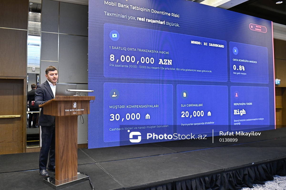 "İnformasiya təhlükəsizliyi riskləri və onların idarə edilməsi" adlı tədbirdə çıxış edən "Kapital Bank" ASC-nin İnformasiya təhlükəsizliyi departamentinin direktor müavini Kamran Kərimov.