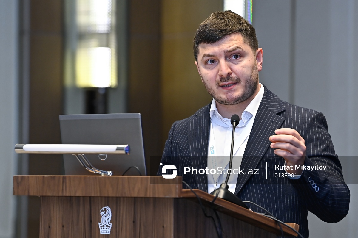 "İnformasiya təhlükəsizliyi riskləri və onların idarə edilməsi" adlı tədbirdə çıxış edən "Kapital Bank" ASC-nin İnformasiya təhlükəsizliyi departamentinin direktor müavini Kamran Kərimov.