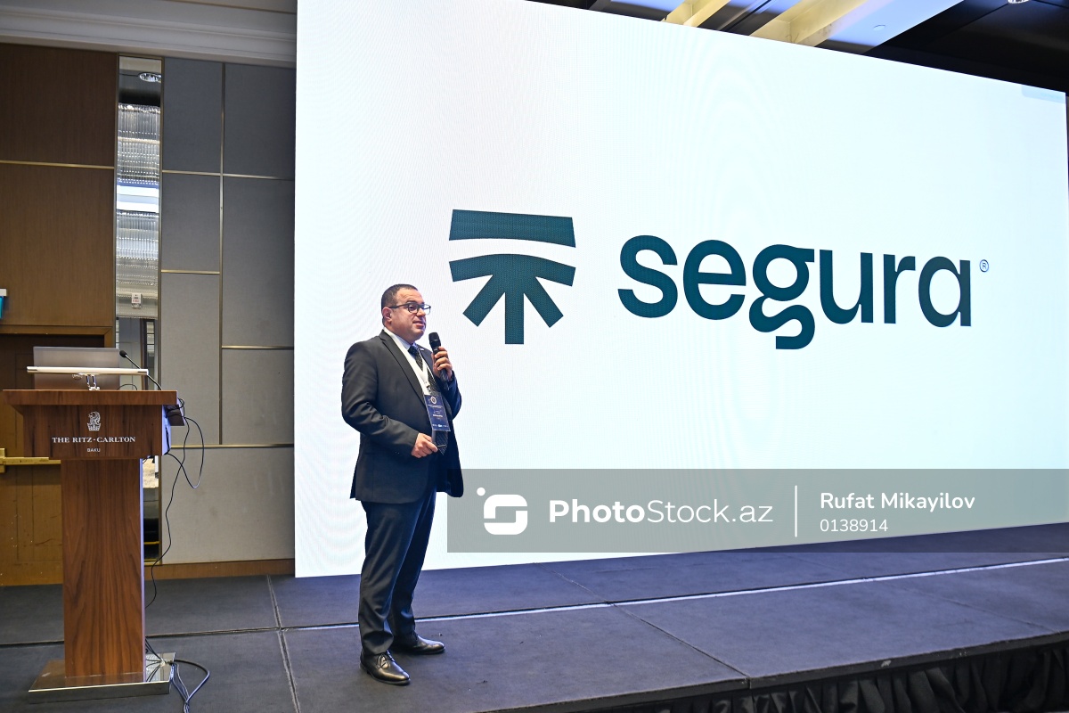 "İnformasiya təhlükəsizliyi riskləri və onların idarə edilməsi" adlı tədbirdə çıxış edən "ESET" şirkətinin Azərbaycan üzrə ölkə direktoru Mustafa İpek.