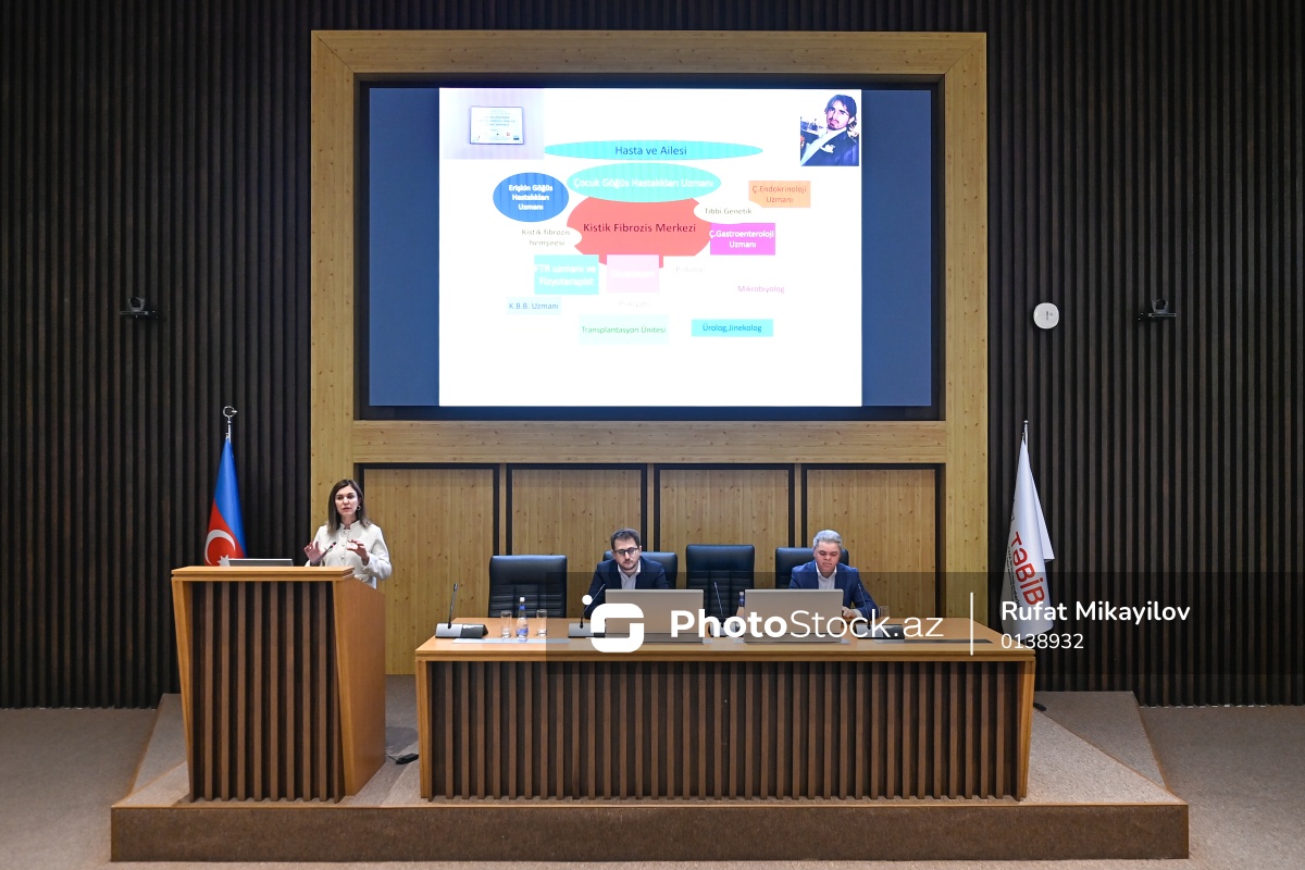 I Respublika Nadir Xəstəliklər Forumunda iştirak edən həkim-pediatr və pulmonoloq Yasemin Gökdemir, həkim-pediatr Erkin Rəhimov, həkim-pulmonoloq Həsən Həsənzadə.