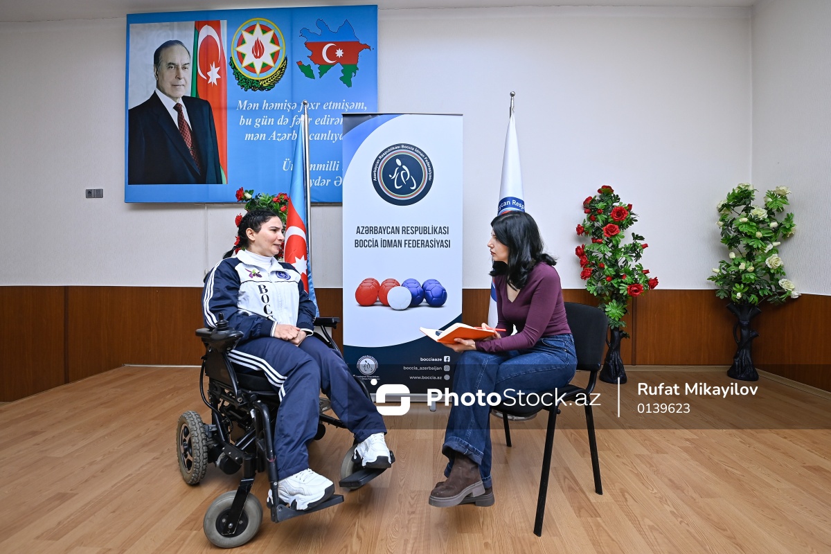 Boccia idman növü üzrə dünya ikincisi Sona Ağayeva (sol) və "Photostock.az" saytının redaktoru Nigar Səmədli (sağ).