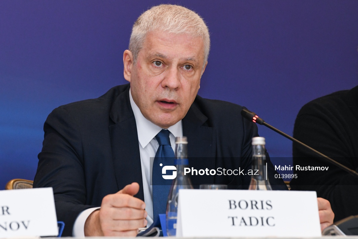 XIII Qlobal Bakı Forumuna həsr olunmuş mətbuat konfransında çıxış edən Serbiyanın sabiq Prezidenti Boris Tadiç.