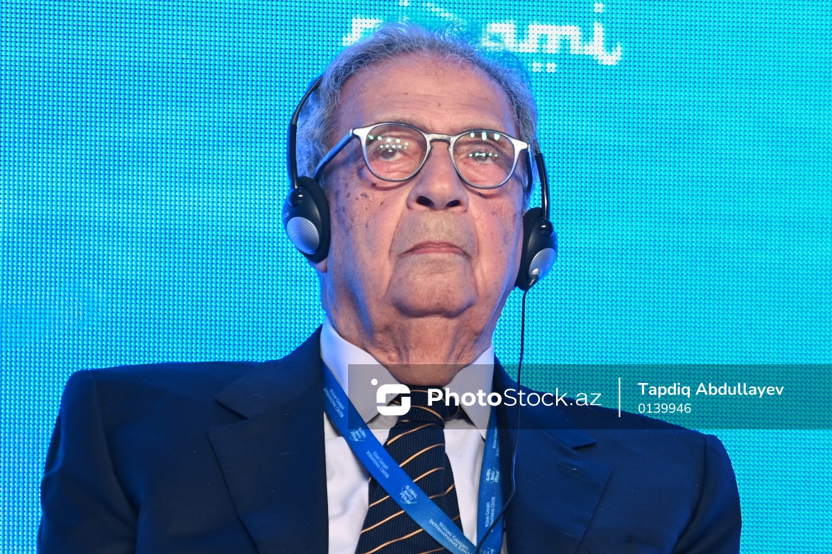 XIII Qlobal Bakı Forumunda çıxış edən Ərəb Liqasının sabiq Baş katibi Əmr Musa.