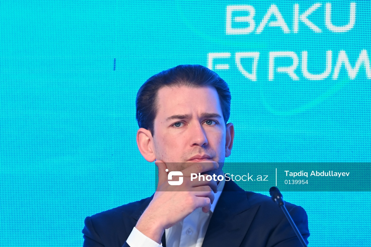 XIII Qlobal Bakı Forumunda çıxış edən Avstriyanın sabiq kansleri Sebastyan Kurts.