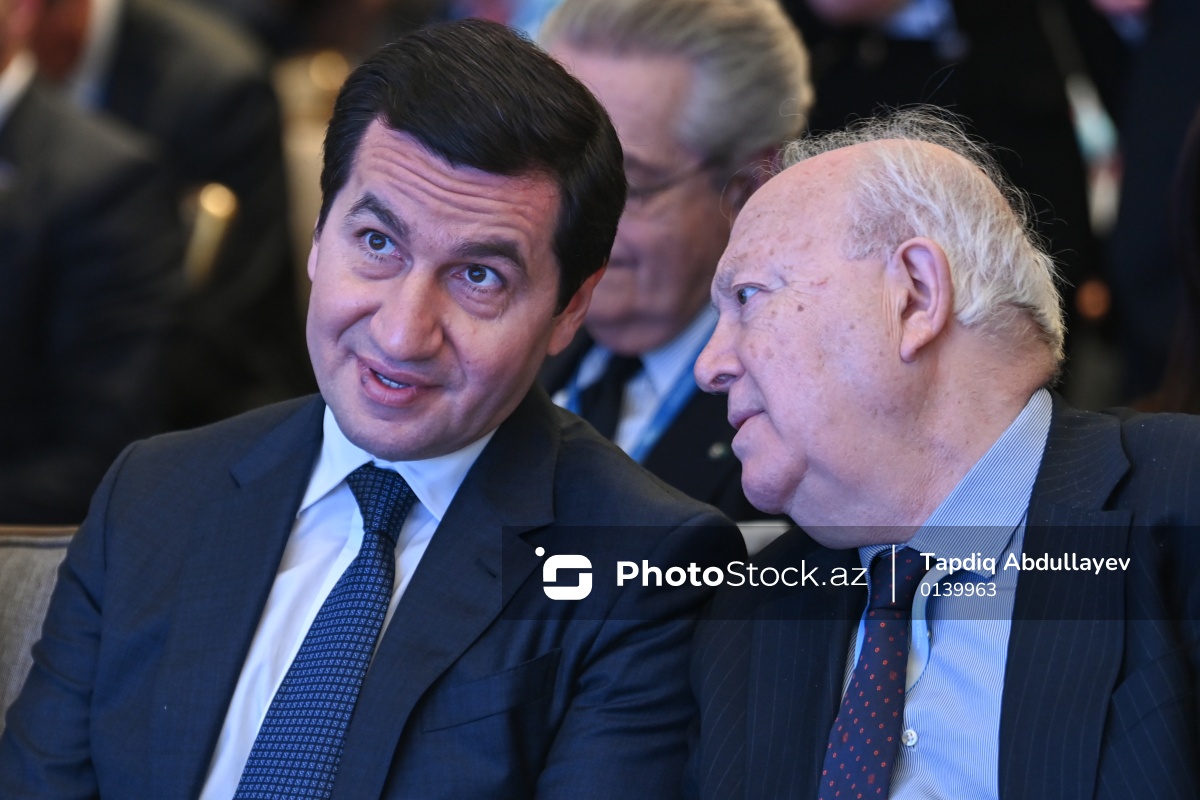 XIII Qlobal Bakı Forumunda iştirak edən Azərbaycan Respublikası Prezidentinin köməkçisi - Azərbaycan Respublikası Prezidentinin Administrasiyasının Xarici siyasət məsələləri şöbəsinin müdiri Hikmət Hacıyev (sol) və BMT-nin Sivilizasiyalar Alyansının ali nümayəndəsi və İslamofobia ilə mübarizə üzrə xüsusi elçisi Migel Angel Moratinos (sağ).