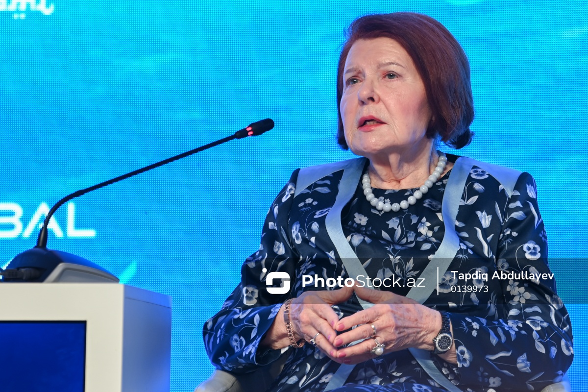 XIII Qlobal Bakı Forumunda çıxış edən Latviyanın sabiq Prezidenti Vayra Vike-Frayberqa.