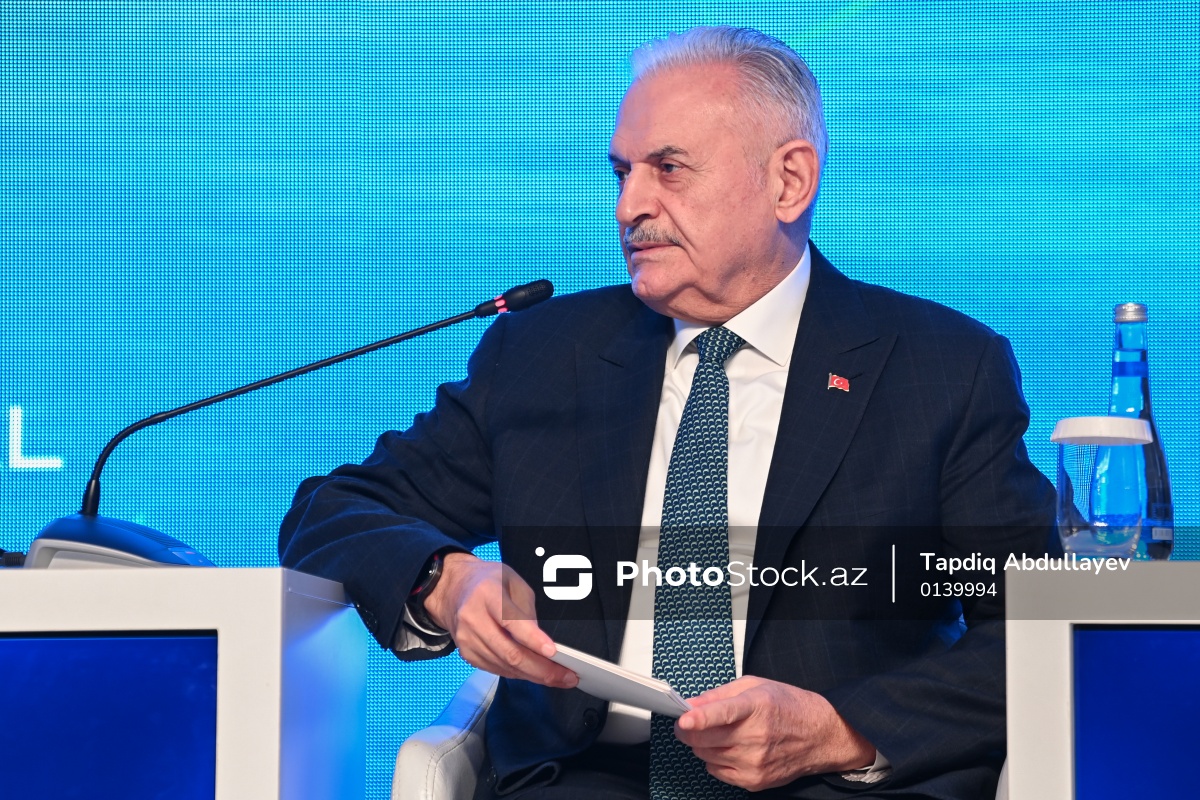 XIII Qlobal Bakı Forumunda çıxış edən Türk Dövlətləri Təşkilatının (TDT) Ağsaqqallar Şurasının sədri Binəli Yıldırım.