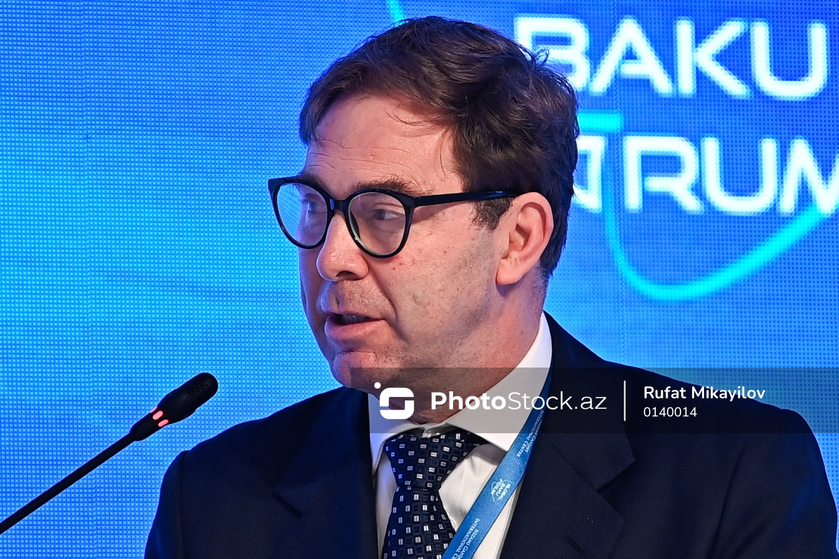 XIII Qlobal Bakı Forumunun ikinci günündə çıxış edən Birləşmiş Krallıq parlamentinin sabiq üzvü Tobias Elvud.