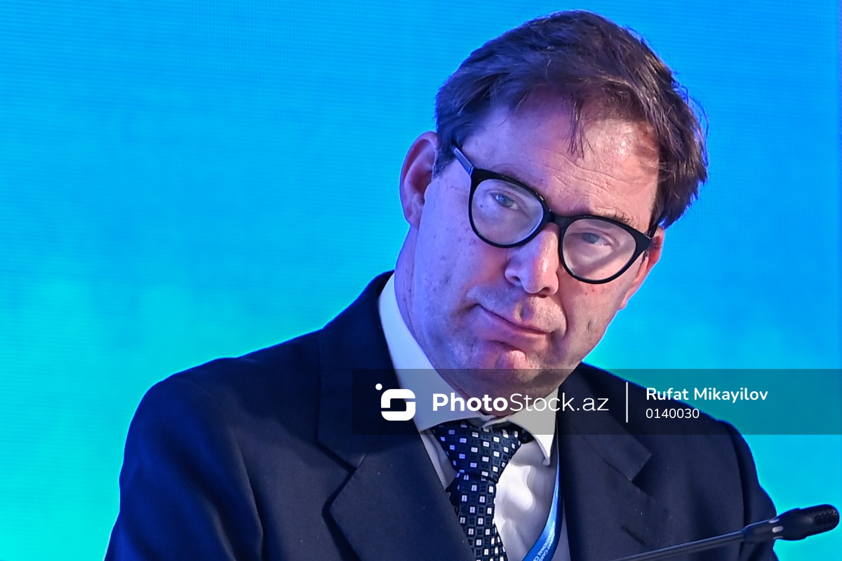 XIII Qlobal Bakı Forumunun ikinci günündə çıxış edən Birləşmiş Krallıq parlamentinin sabiq üzvü Tobias Elvud.
