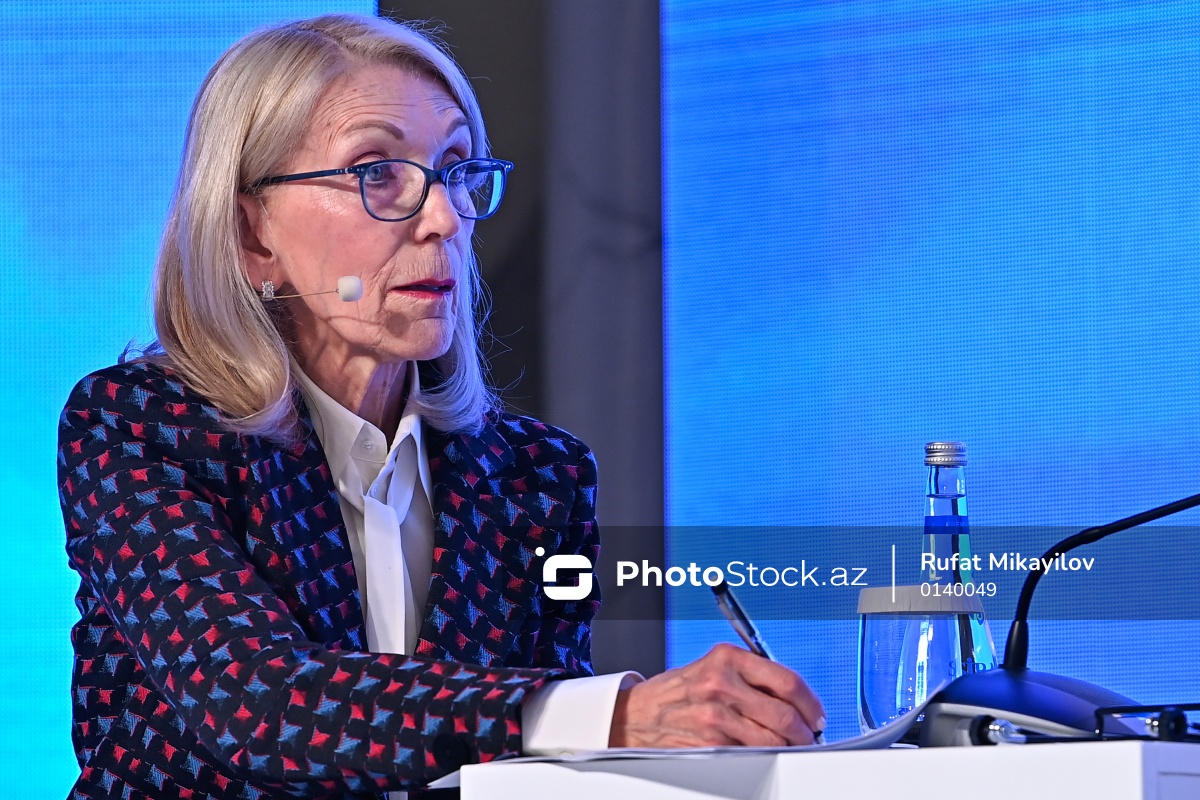 XIII Qlobal Bakı Forumunun ikinci günündə çıxış edən "ExxonMobil" şirkətinin sabiq vitse-prezidenti Cin Badersşnayder.