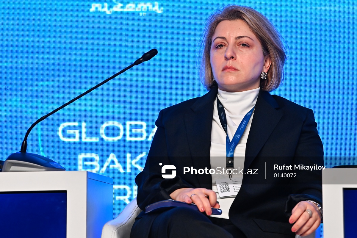 XIII Qlobal Bakı Forumunun ikinci günündə çıxış edən Gürcüstanın Baş nazirinin sabiq müavini Eka Tkeşelaşvili.