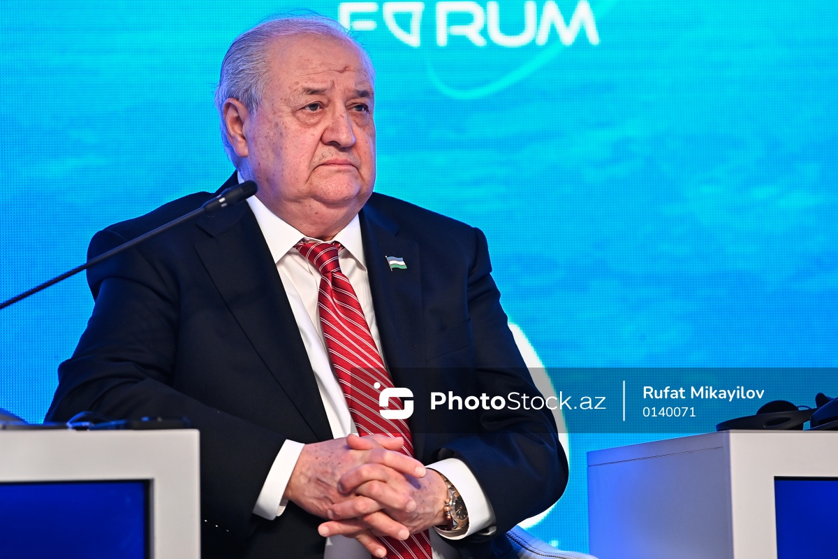 XIII Qlobal Bakı Forumunun ikinci günündə çıxış edən Özbəkistan Prezidentinin xarici siyasət üzrə müşaviri Abdulaziz Kamilov.