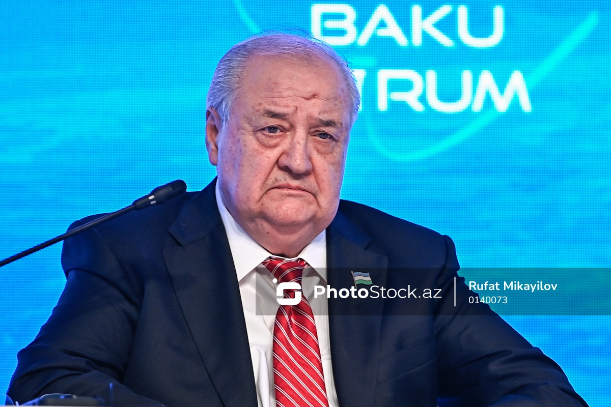 XIII Qlobal Bakı Forumunun ikinci günündə çıxış edən Özbəkistan Prezidentinin xarici siyasət üzrə müşaviri Abdulaziz Kamilov.