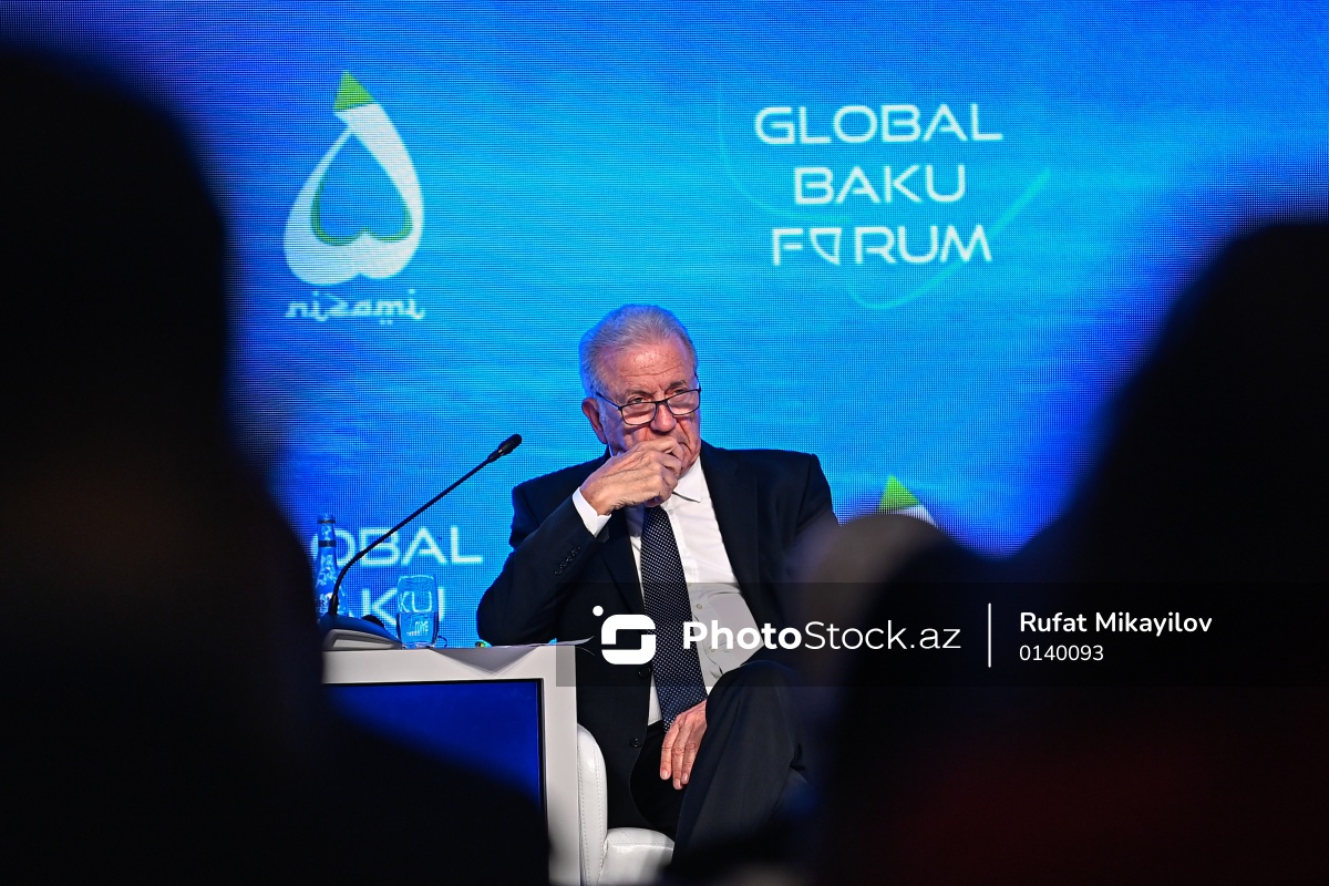 XIII Qlobal Bakı Forumunun ikinci günündə çıxış edən Miqrasiya, Daxili İşlər və Vətəndaşlıq üzrə sabiq Avropa Komissarı Dimitris Avramopulos.