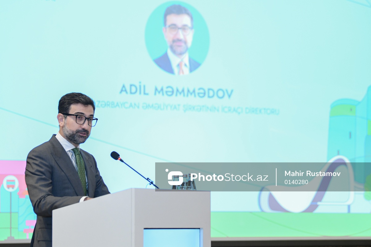 "AZS ISO 20121:2026 - Tədbir davamlılığının idarəetmə sistemləri" üzrə dövlət standartının təqdimatında çıxış edən Ümumdünya Şəhərsalma Forumunun 13-cü sessiyası (WUF13) üzrə Azərbaycan Əməliyyat Şirkətinin icraçı direktoru Adil Məmmədov.