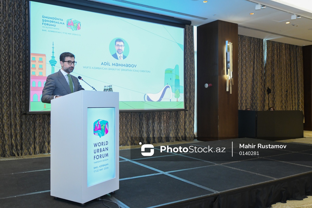 "AZS ISO 20121:2026 - Tədbir davamlılığının idarəetmə sistemləri" üzrə dövlət standartının təqdimatında çıxış edən Ümumdünya Şəhərsalma Forumunun 13-cü sessiyası (WUF13) üzrə Azərbaycan Əməliyyat Şirkətinin icraçı direktoru Adil Məmmədov.