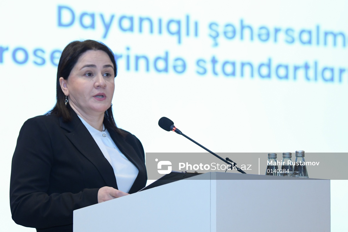 "AZS ISO 20121:2026 - Tədbir davamlılığının idarəetmə sistemləri" üzrə dövlət standartının təqdimatında çıxış edən Azərbaycan Standartlaşdırma İnstitutunun Baş direktor müavini/ baş direktor vəzifəsini müvəqqəti icra edən Kəmalə Məmmədzadə.