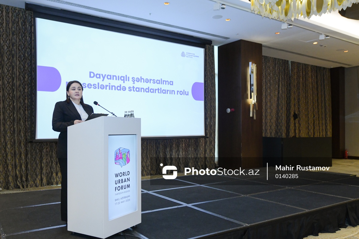 "AZS ISO 20121:2026 - Tədbir davamlılığının idarəetmə sistemləri" üzrə dövlət standartının təqdimatında çıxış edən Azərbaycan Standartlaşdırma İnstitutunun Baş direktor müavini/ baş direktor vəzifəsini müvəqqəti icra edən Kəmalə Məmmədzadə.