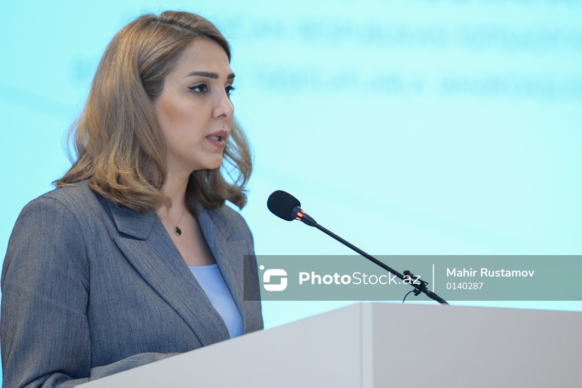"AZS ISO 20121:2026 - Tədbir davamlılığının idarəetmə sistemləri" üzrə dövlət standartının təqdimatında çıxış edən Azərbaycan Respublikası İqtisadiyyat Nazirliyinin Beynəlxalq təşkilatlarla əməkdaşlıq şöbəsinin müdiri İnarə Mustafayeva.