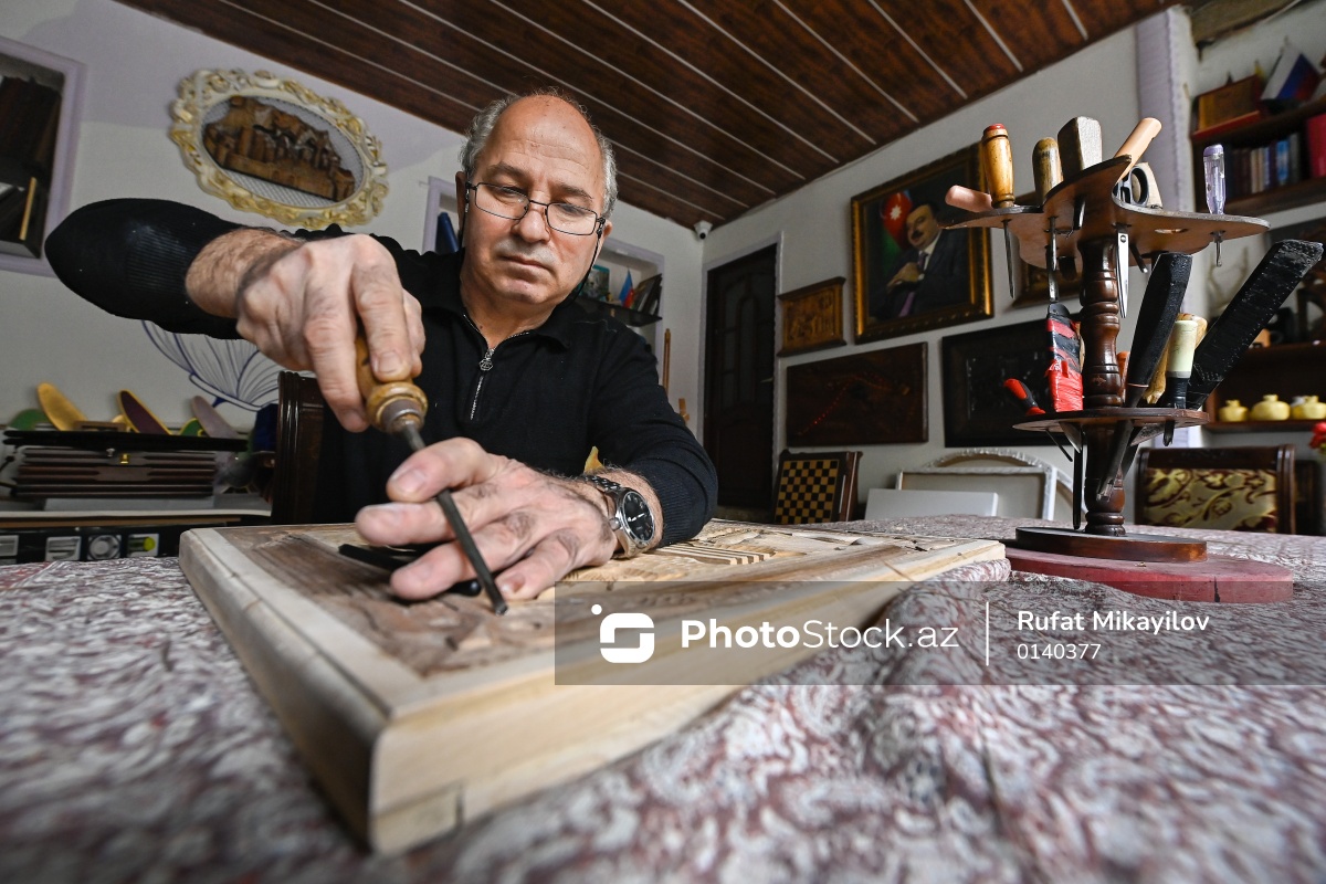 59 yaşlı oymaçı Azər Əsədov sənət yoluna əvvəlcə rəssamlıqla başlasa da, 1982-ci ildən etibarən özünü tamamilə oyma sənətinə həsr edib. Onun ilk əl işi taxtadan hazırladığı Qız Qalasının maketi olub və bu, gələcək yaradıcılığının əsasını qoyub. Daha sonra bu sahə üzrə texniki peşə məktəbində təhsil alaraq peşəkarlığını inkişaf etdirib. Azər Əsədov 2001-ci ildən fəaliyyət göstərən emalatxanasını da öz əlləri ilə inşa edib. O bildirir ki, ağac üzərində işləmək onun üçün sadəcə sənət deyil, eyni zamanda bir növ daxili rahatlıq və istirahətdir. Sənətinin sirlərini paylaşmağı missiya sayan usta həm də Sosial Xidmətlər Agentliyinin Əlilliyi olan şəxslərin Peşə-Əmək Reabilitasiya Mərkəzində bədii oyma üzrə mentor vəzifəsində çalışır. Burada o, reabilitasiya keçən uşaqlara və gənclərə ağac üzərində oyma sənətinin incəliklərini öyrədir. Onun fikrincə, bu sənət həmin gənclər üçün həm əlçatan, həm də terapevtik təsirə malikdir. Azər Əsədovun yaradıcılığı yalnız yerli sərgilərlə məhdudlaşmır. O, müxtəlif beynəlxalq sərgilərdə iştirak edərək İtaliya, Belçika, Rusiya və Səudiyyə Ərəbistanı kimi ölkələrdə Azərbaycanı uğurla təmsil edib. Azərbaycan Rəssamlar İttifaqının üzvü olan Azər Əsədov bu gün həm sənəti, həm də yetişdirdiyi şagirdlərlə ağac oymaçılığının yaşamasına və inkişafına töhfə verməkdə davam edir.
