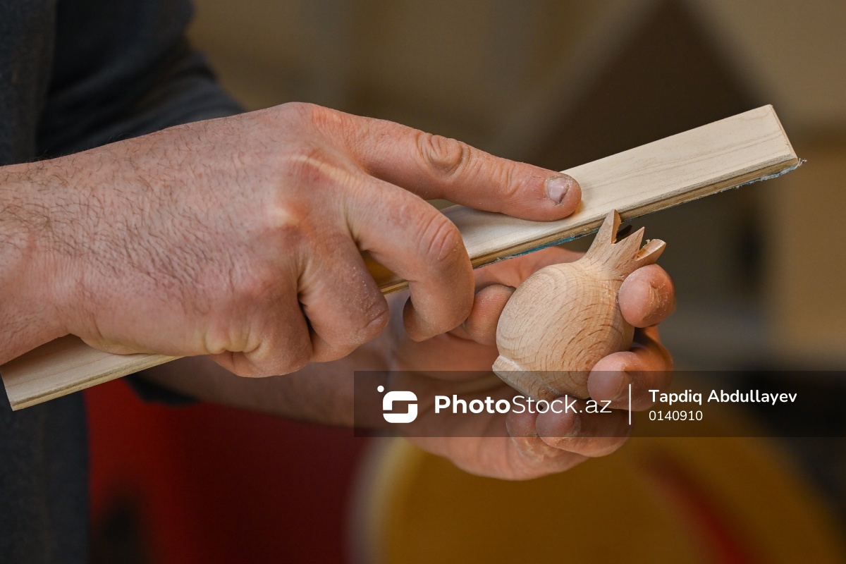 Ağac materiallarından müxtəlif əl işlərinin ərsəyə gəldiyi xarratlıq emalatxanasında uşaq oyuncaqları, mebellər və dekorativ əşyalar hazırlanır. Emalatxananın sahibi, 47 yaşlı Əziz Hüseynzadə artıq səkkiz ildir ki, xarratlıq sənəti ilə məşğuldur. O, ixtisasca riyaziyyatçı olsa da, sonradan bu sahəyə maraq göstərməyə başlayıb. İlk vaxtlar boş zamanlarını dəyərləndirmək üçün başladığı bu iş zamanla onun əsas fəaliyyətinə çevrilib. Əziz Hüseynzadə bildirir ki, xarratlıq yaradıcılıq tələb edən sənət olduğu üçün hər dəfə yeni nəsə öyrənmək mümkündür. O, zamanla özünə komanda toplayaraq emalatxananı daha da inkişaf etdirib. Burada hazırlanacaq məhsulun əvvəlcə çertyoju çəkilir, daha sonra xammal doğranır, hamarlanır, forma verilir və sonda quraşdırılaraq hazır vəziyyətə gətirilir. Əşyaların hazırlanmasında şam ağacı ilə yanaşı, daha davamlı olan qoz, palıd və fıstıq kimi ağaclardan da istifadə olunur.