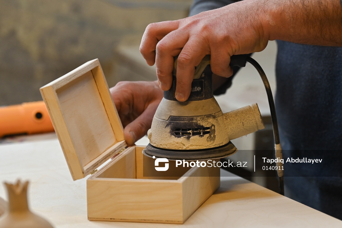Ağac materiallarından müxtəlif əl işlərinin ərsəyə gəldiyi xarratlıq emalatxanasında uşaq oyuncaqları, mebellər və dekorativ əşyalar hazırlanır. Emalatxananın sahibi, 47 yaşlı Əziz Hüseynzadə artıq səkkiz ildir ki, xarratlıq sənəti ilə məşğuldur. O, ixtisasca riyaziyyatçı olsa da, sonradan bu sahəyə maraq göstərməyə başlayıb. İlk vaxtlar boş zamanlarını dəyərləndirmək üçün başladığı bu iş zamanla onun əsas fəaliyyətinə çevrilib. Əziz Hüseynzadə bildirir ki, xarratlıq yaradıcılıq tələb edən sənət olduğu üçün hər dəfə yeni nəsə öyrənmək mümkündür. O, zamanla özünə komanda toplayaraq emalatxananı daha da inkişaf etdirib. Burada hazırlanacaq məhsulun əvvəlcə çertyoju çəkilir, daha sonra xammal doğranır, hamarlanır, forma verilir və sonda quraşdırılaraq hazır vəziyyətə gətirilir. Əşyaların hazırlanmasında şam ağacı ilə yanaşı, daha davamlı olan qoz, palıd və fıstıq kimi ağaclardan da istifadə olunur.