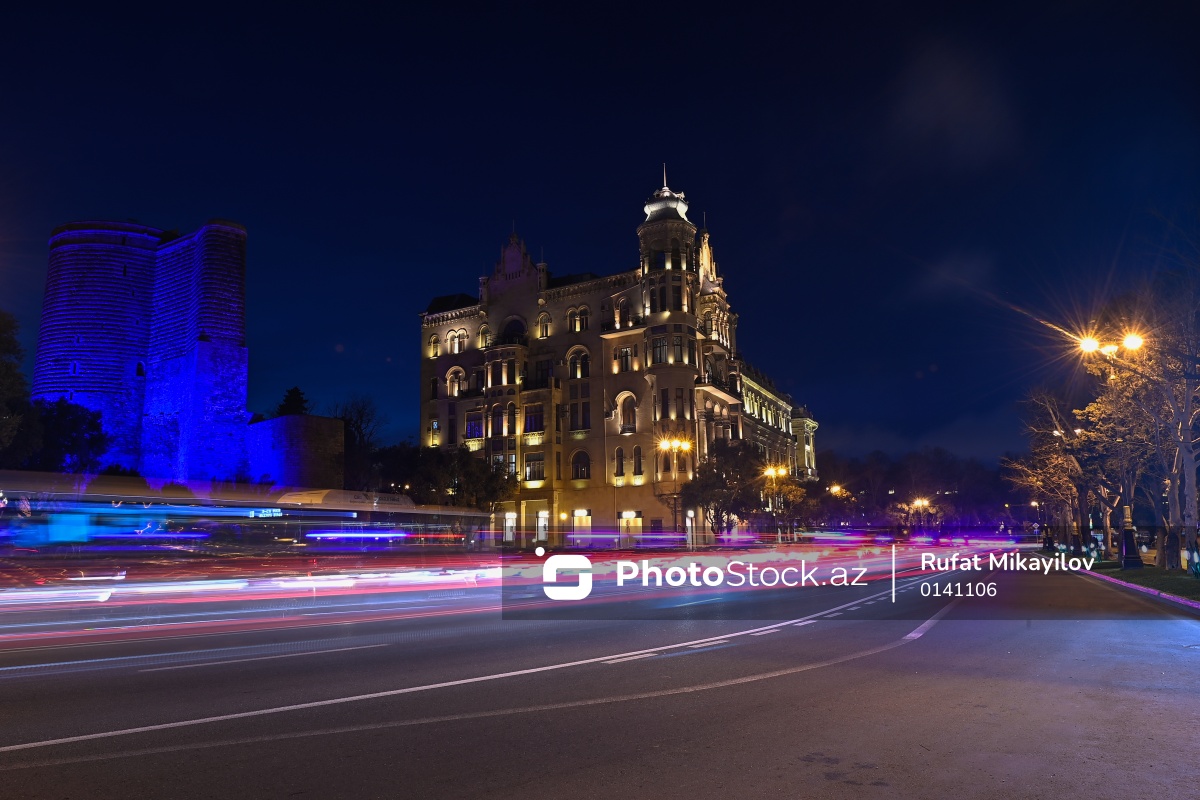 Dünya Autizm Maarifləndirmə Günü ilə əlaqədar mavi rənglə işıqlandırılan Qız Qalası.