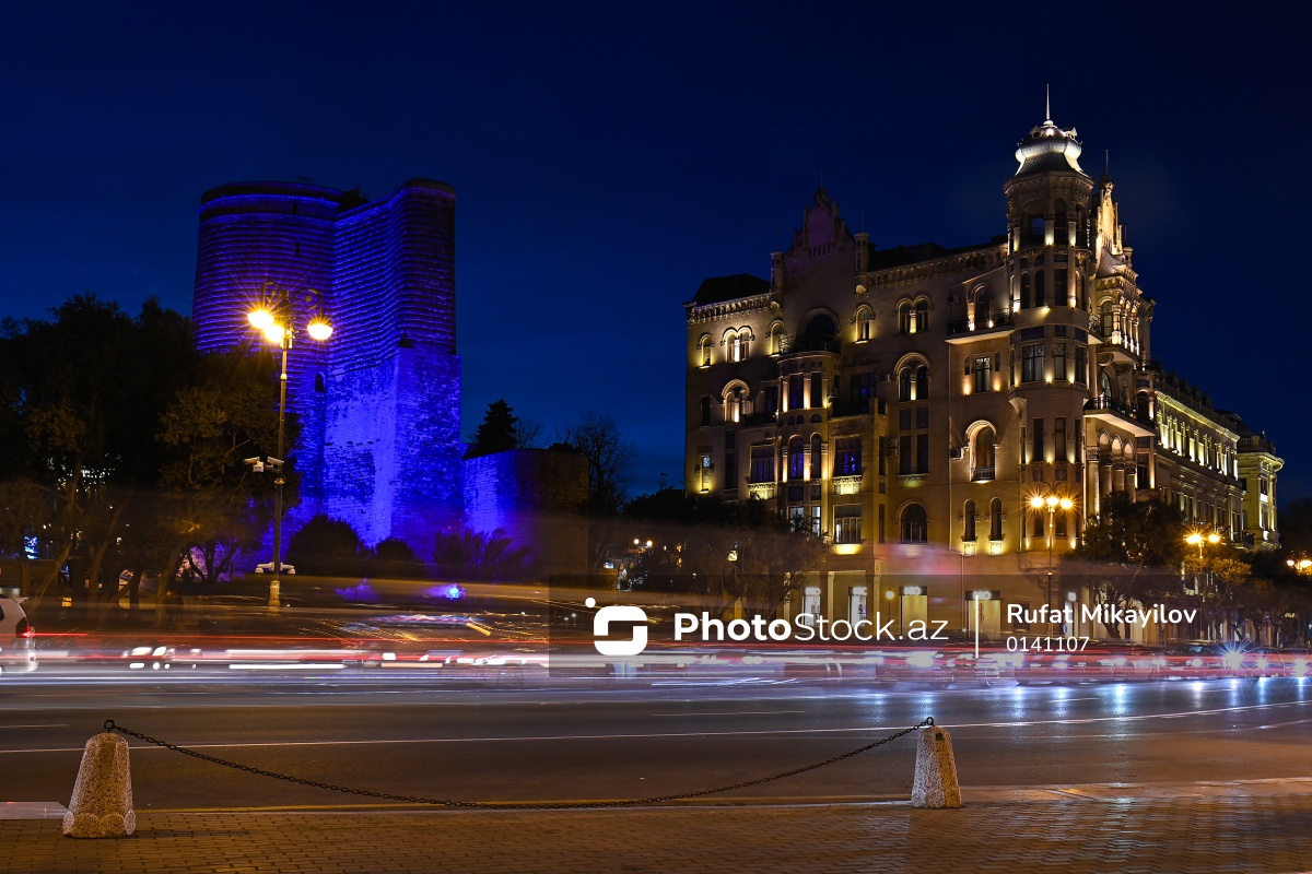 Dünya Autizm Maarifləndirmə Günü ilə əlaqədar mavi rənglə işıqlandırılan Qız Qalası.