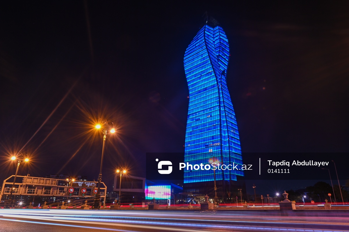 Dünya Autizm Maarifləndirmə Günü ilə əlaqədar mavi rənglə işıqlandırılan "SOCAR Tower".