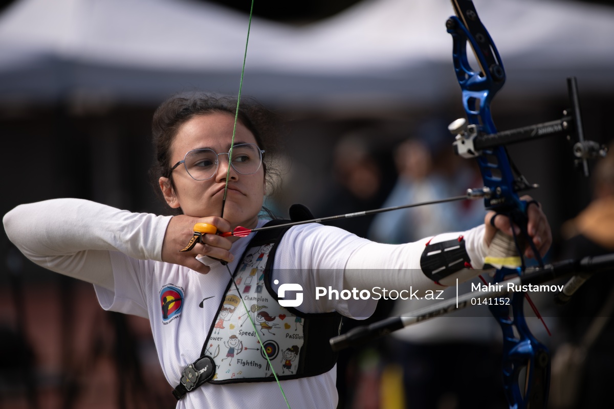 Kamandan oxatma üzrə Bakı şəhər kubokunun I mərhələsində iştirak edən Dilguşə Sadıqova.