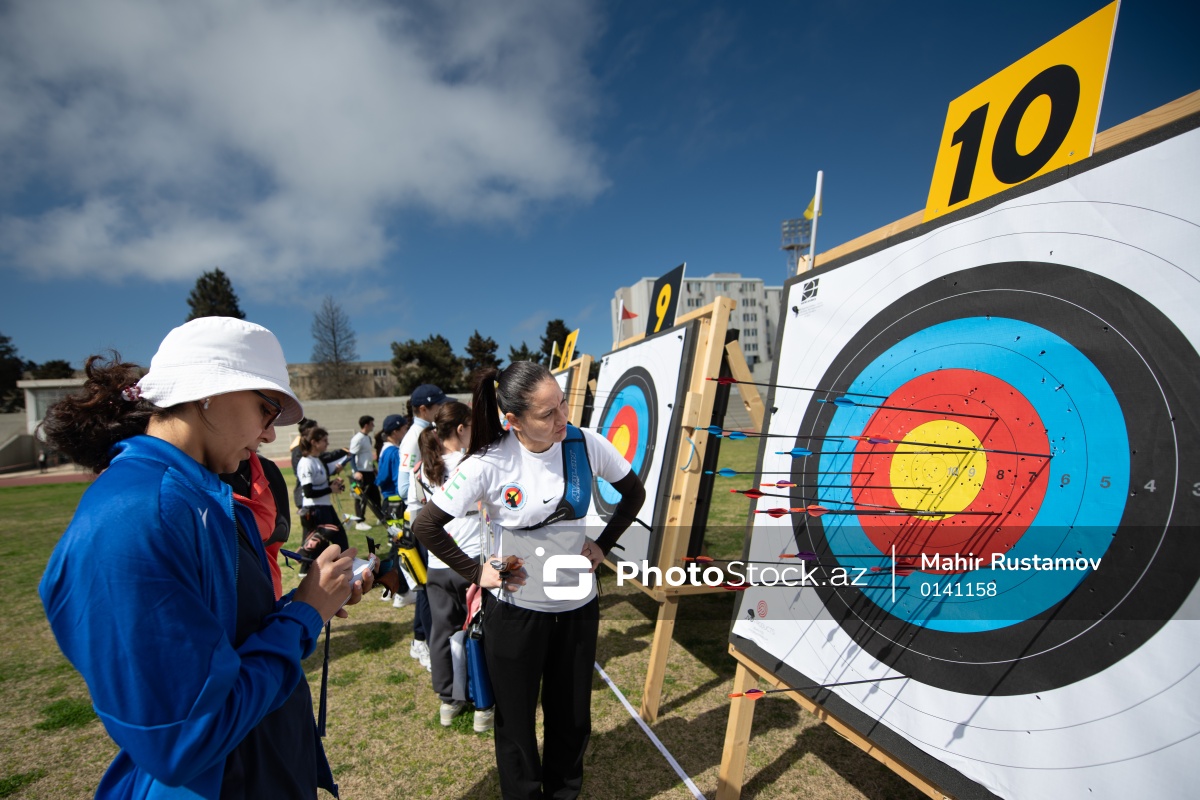 Kamandan oxatma üzrə Bakı şəhər kubokunun I mərhələsində iştirak edən Yaylagül Ramazanova (sol) və Nigar Əhədova (sağ).