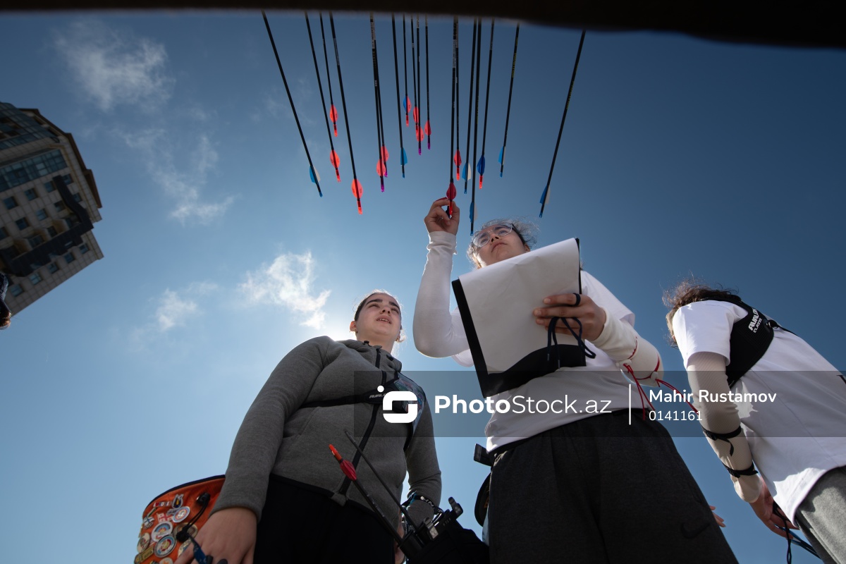 Kamandan oxatma üzrə Bakı şəhər kubokunun I mərhələsində iştirak edən Zəhra Carçılı (sol) və Dilguşə Sadıqova (sağ).