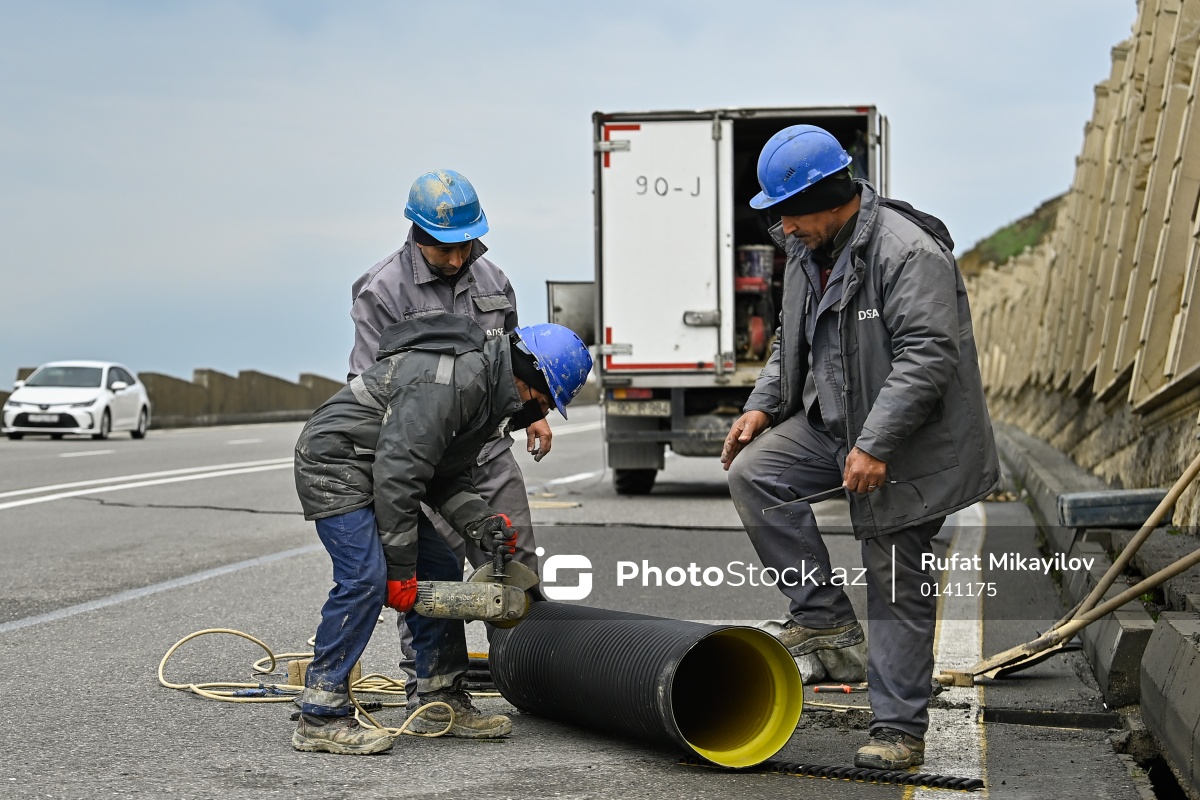 Bibiheybət yolunda yaranmış torpaq sürüşməsi təhlükəsi