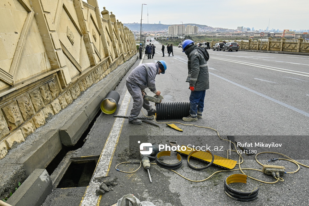Bibiheybət yolunda yaranmış torpaq sürüşməsi təhlükəsi