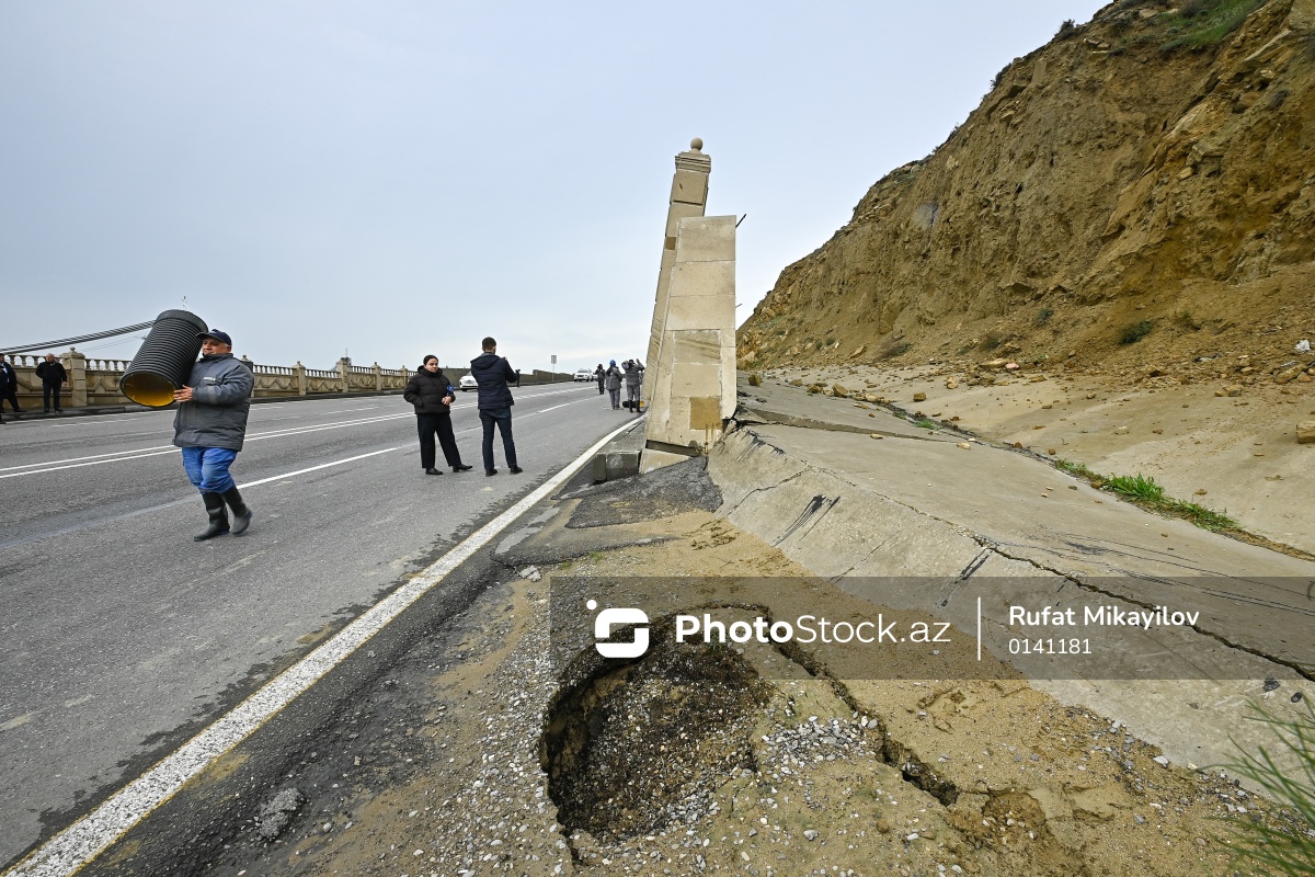 Bibiheybət yolunda yaranmış torpaq sürüşməsi təhlükəsi