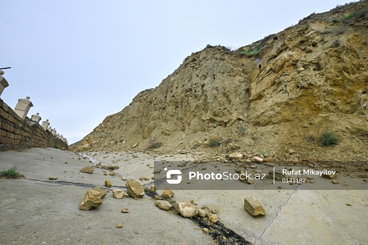 Bibiheybət yolunda yaranmış torpaq sürüşməsi təhlükəsi
