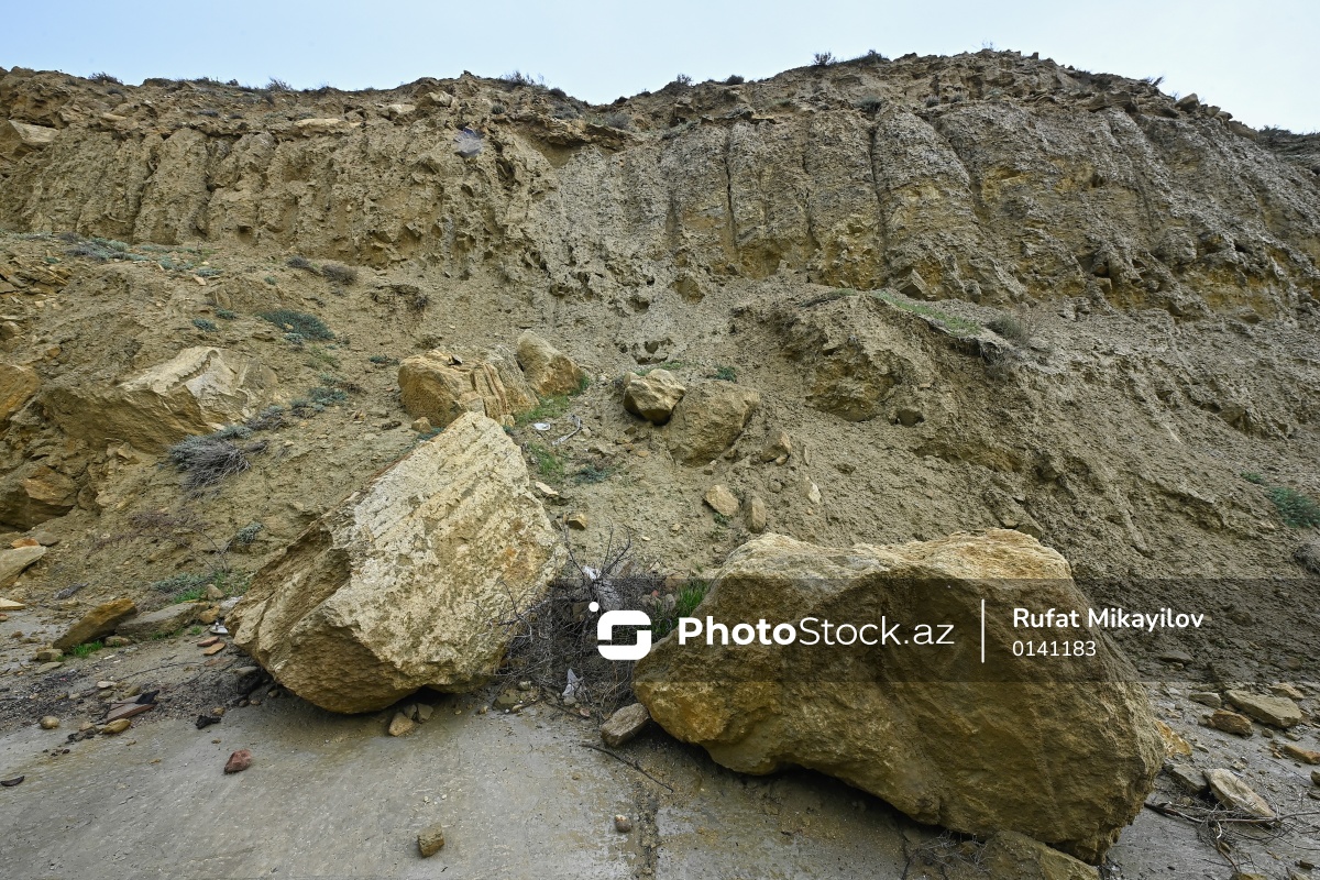 Bibiheybət yolunda yaranmış torpaq sürüşməsi təhlükəsi
