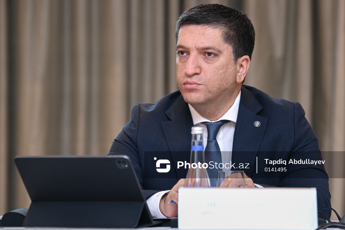 Birləşmiş Millətlər Təşkilatının (BMT) Davamlı İnkişaf üzrə Əməkdaşlıq Çərçivəsinin Yüksək Səviyyəli Birgə Rəhbər Komitəsinin iclasında çıxış edən Azərbaycan Respublikasının iqtisadiyyat nazirinin müşaviri Hüseyn Hüseynov.