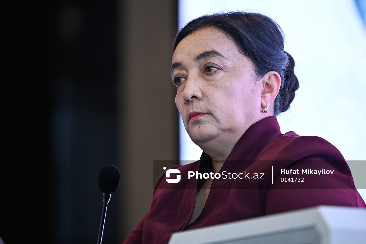 "AQEM məkanında davamlı inkişaf naminə qadınların səslərinin gücləndirilməsi" mövzusunda beynəlxalq konfransdakı "Kiçik və orta bizneslərdə (KOB) qadın sahibkarlar: süni intellekt və rəqəmsallaşmanın imkanlarından istifadə" adlı panel müzakirəsində çıxış edən Özbəkistan Respublikasının Baş nazirinin müavini, Ailə və Qadınlar Komitəsinin sədri Zulayxo Baxriddinovna Maxkamova.