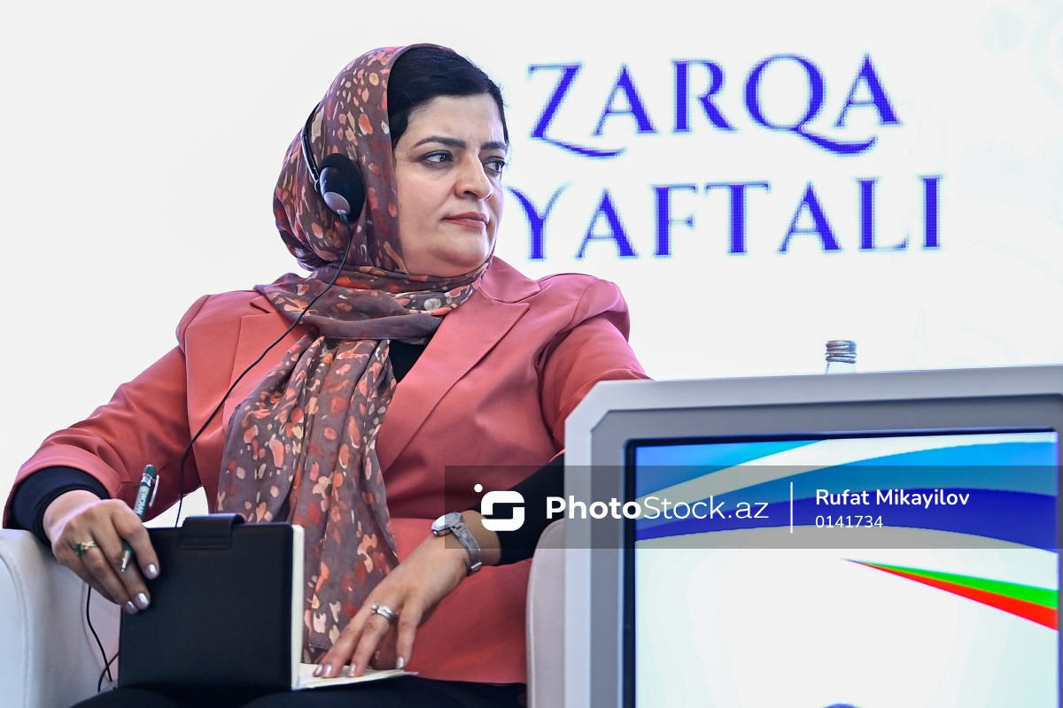 "AQEM məkanında davamlı inkişaf naminə qadınların səslərinin gücləndirilməsi" mövzusunda beynəlxalq konfransdakı "Kiçik və orta bizneslərdə (KOB) qadın sahibkarlar: süni intellekt və rəqəmsallaşmanın imkanlarından istifadə" adlı panel müzakirəsində çıxış edən "Women and Children Research and Advocacy Network" təşkilatının baş icraçı direktoru Zarqa Yaftali.