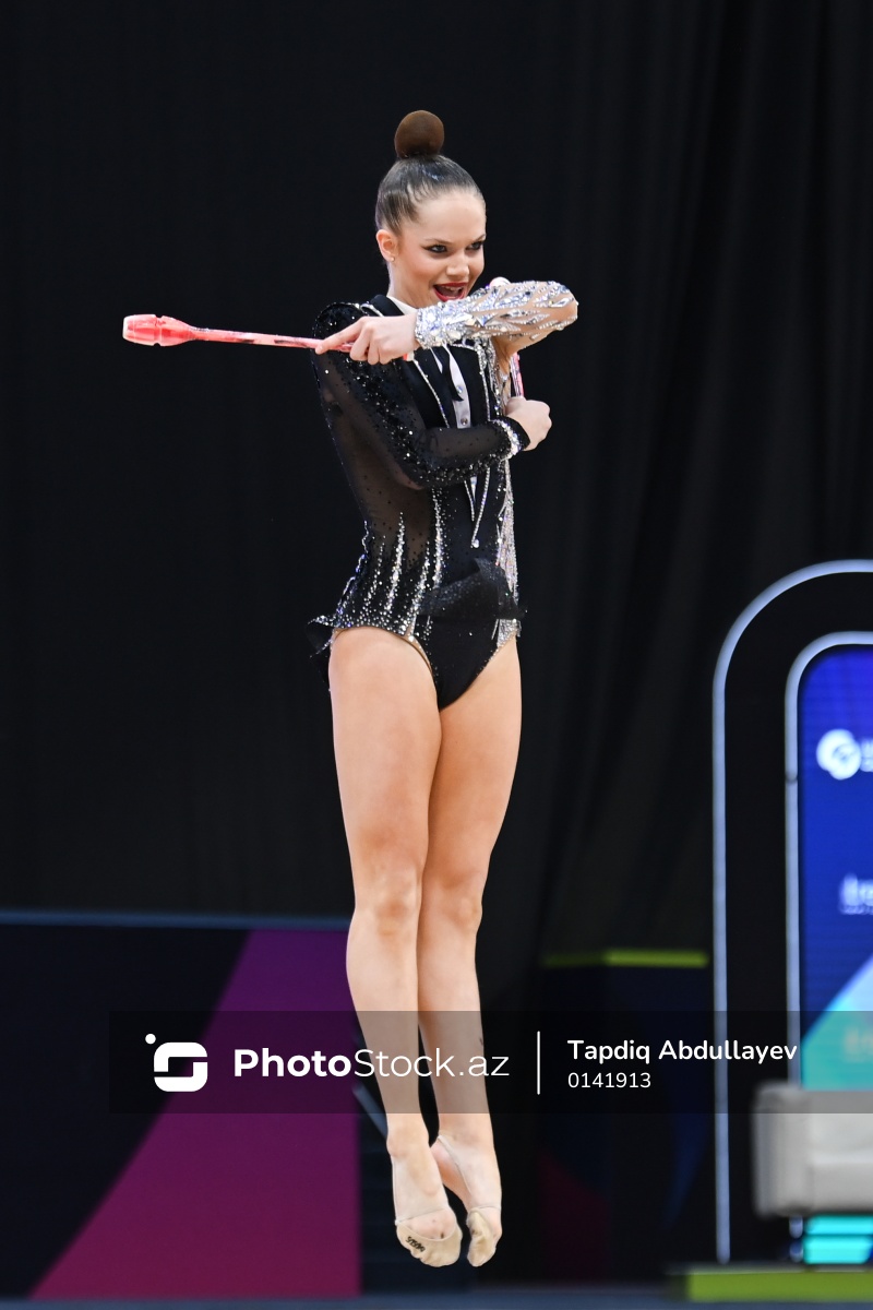 Bakıda keçirilən bədii gimnastika üzrə Dünya kubokunda iştirak edən Moldova təmsilçisi Polina Sliomskaya.