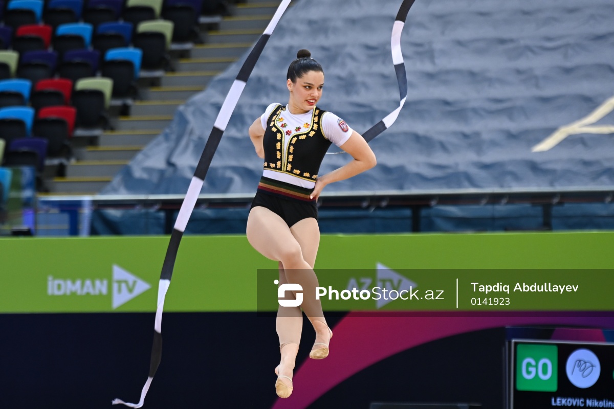 Bakıda keçirilən bədii gimnastika üzrə Dünya kubokunda iştirak edən Serbiya təmsilçisi Nikolina Lekoviç.