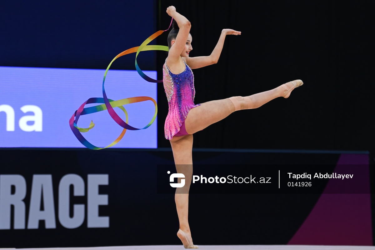 Bakıda keçirilən bədii gimnastika üzrə Dünya kubokunda iştirak edən Monteneqro təmsilçisi Yana Siseviç.