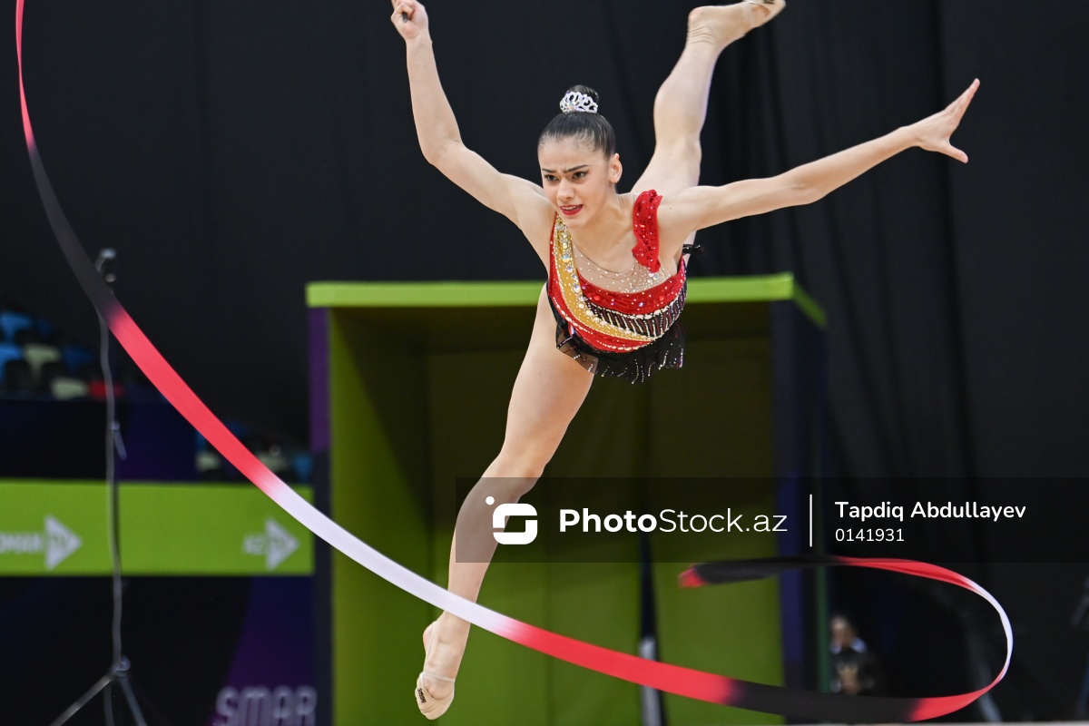 Bakıda keçirilən bədii gimnastika üzrə Dünya kubokunda iştirak edən Kosta-Rika təmsilçisi Qloriana Sançez Arquedas.