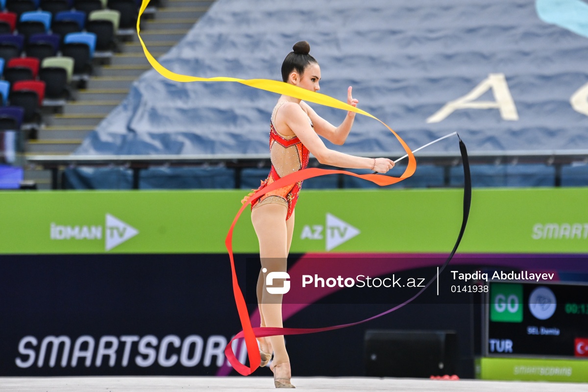Bakıda keçirilən bədii gimnastika üzrə Dünya kubokunda iştirak edən Türkiyə təmsilçisi Damla Sel.
